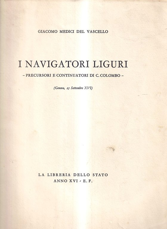 I navigatori liguri. Precursori e continuatori di C. Colombo (Genova, 23 Settembre XVI) | Rare and modern books | Medici Del Vascello, Giacomo