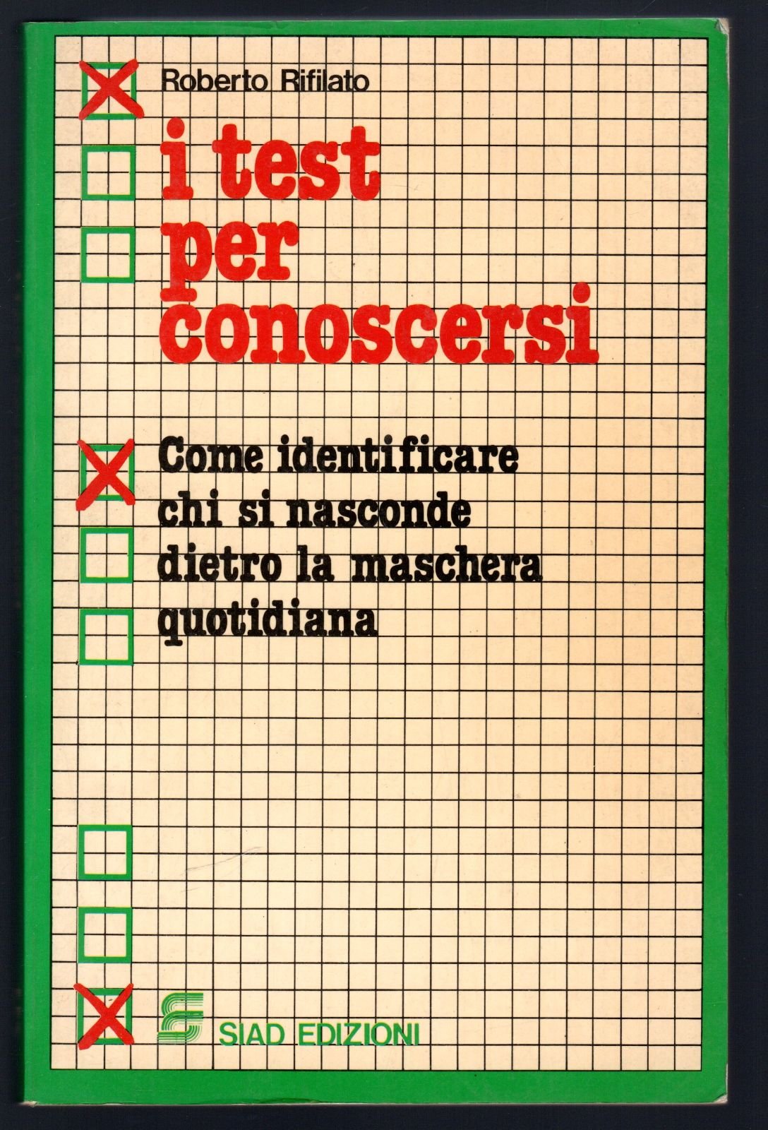 Libro vintage in-16°, brossura con 172 pagg, Milano, 1984. Guide. Dalla quarta di copertina: "E' noto a tutti cos'è un test: un espediente per verificare e/o misurare le proprie potenzialità o certe valenze caratteriali". Etichetta adesiva in quarta di copertina. Figure in nero all'interno e fuori dal testo. Sottolineature a matita all'interno.