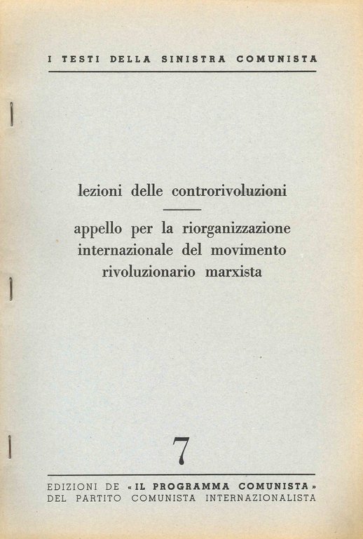 I testi della sinistra comunista numero 7 - Lezioni delle controrivoluzioni