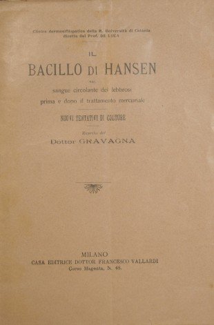Il bacillo di Hansen nel sangue circolante dei lebbrosi prima e dopo il trattamento mercuriale | Rare and modern books | Gravagna Giuseppe