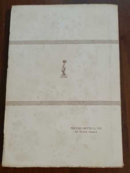 Pagine testo: ingiallite lievemente. Copertina: cartonata, con fioriture, ingiallita, sporca lievemente. Sguardi: ingialliti lievemente. Legatura: a colla. Taglio: ingiallito. Dorso: scolorito. Frontespizio: ingiallito lievemente. Margini ingialliti lievemente Buono (Good) .
