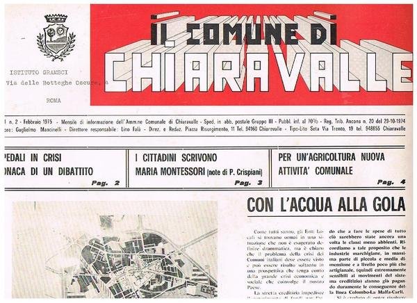 Il comune di Chiaravalle, mensile dell'amministrazione comunale, disponiamo: anno I° 1975 n° 2, 3, 4, 5, 7, 9, 10, 11. 1976 n° 1, 2, 3, 4, 5, 5 bis, 7-8, 9. 1977 n° 1, 3, 5, 6-7, 8-9. 1978 n° 1-2, 5-6-7. 1979 n° 2-3.