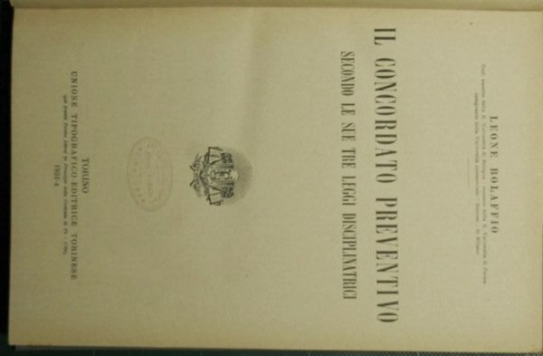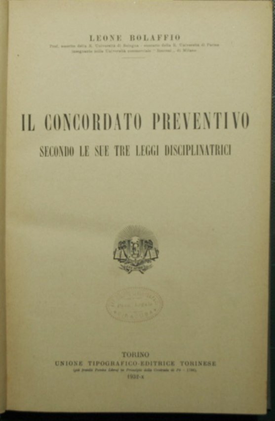 Il concordato preventivo secondo le sue tre leggi disciplinatrici | Rare and modern books | Bolaffio Leone