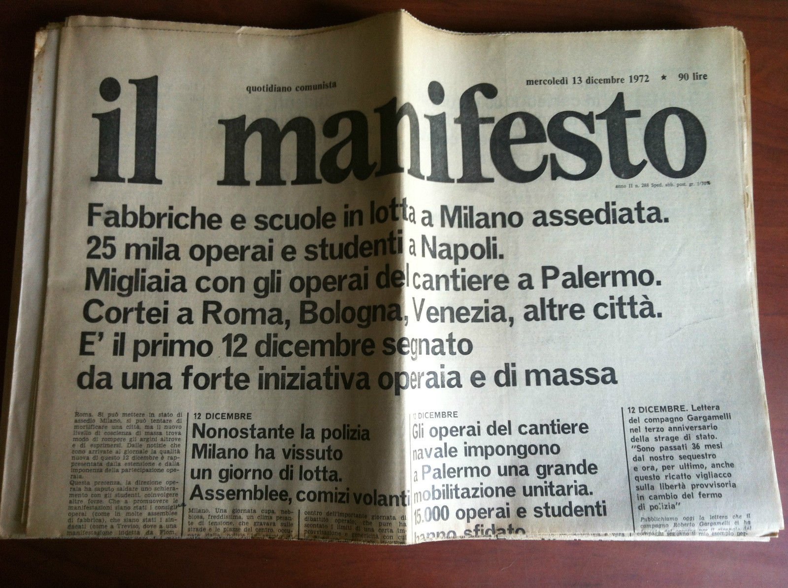 Il Manifesto anno II n^ 288 Mercoledì 13 dicembre 1972 - E10599