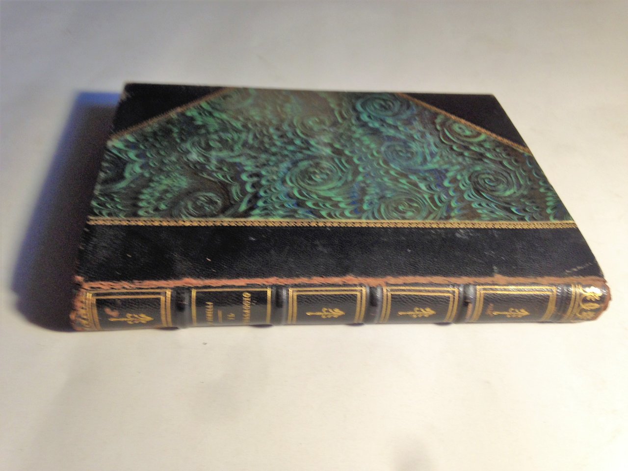 I ed., Secondo Migliaio. L'opera fu rappresentata per la prima volta a Roma e a Torino la sera del 31 marzo 1911 dalle due Compagnie della Città di Roma). XVI - (8)+188 - rilegatura in mezza pelle nera con angoli, titoli e ornati in oro e con i piatti rifiniti in carta marmorizzata in nero, verde e blu. Fogli di guardia marmorizzati in bianco, verde chiaro, azzurro e rosa. La rilegatura mantiene i piatti della brossura originale in carta ruvida avorio con titoli e incisioni decorative in arancione. Stato buono (usura della copertina ai margini e ai canaletti - fogli di guardia, piatti della brossura originale leggermente bruniti).