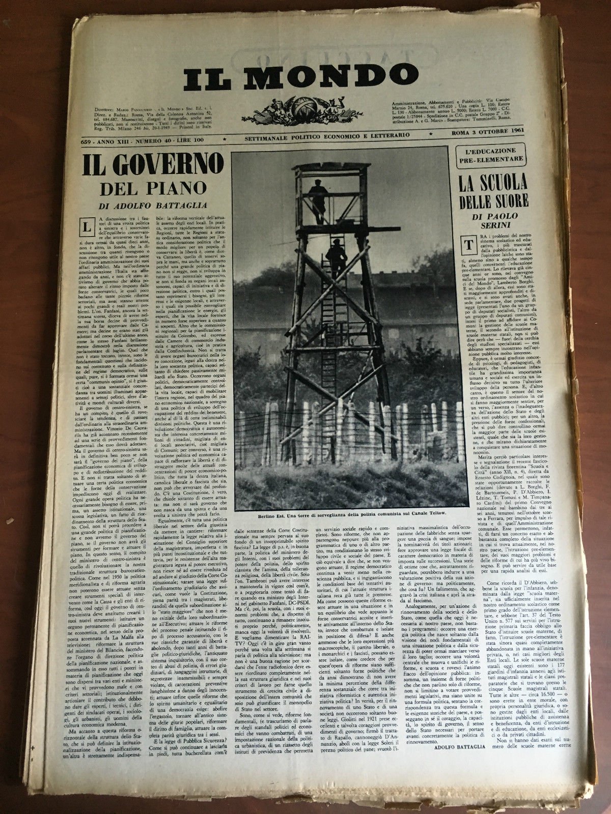 Il Mondo diretto da Mario Pannunzio 659 Anno XIII n^ 40 -3 Ottobre 1961 - E21859