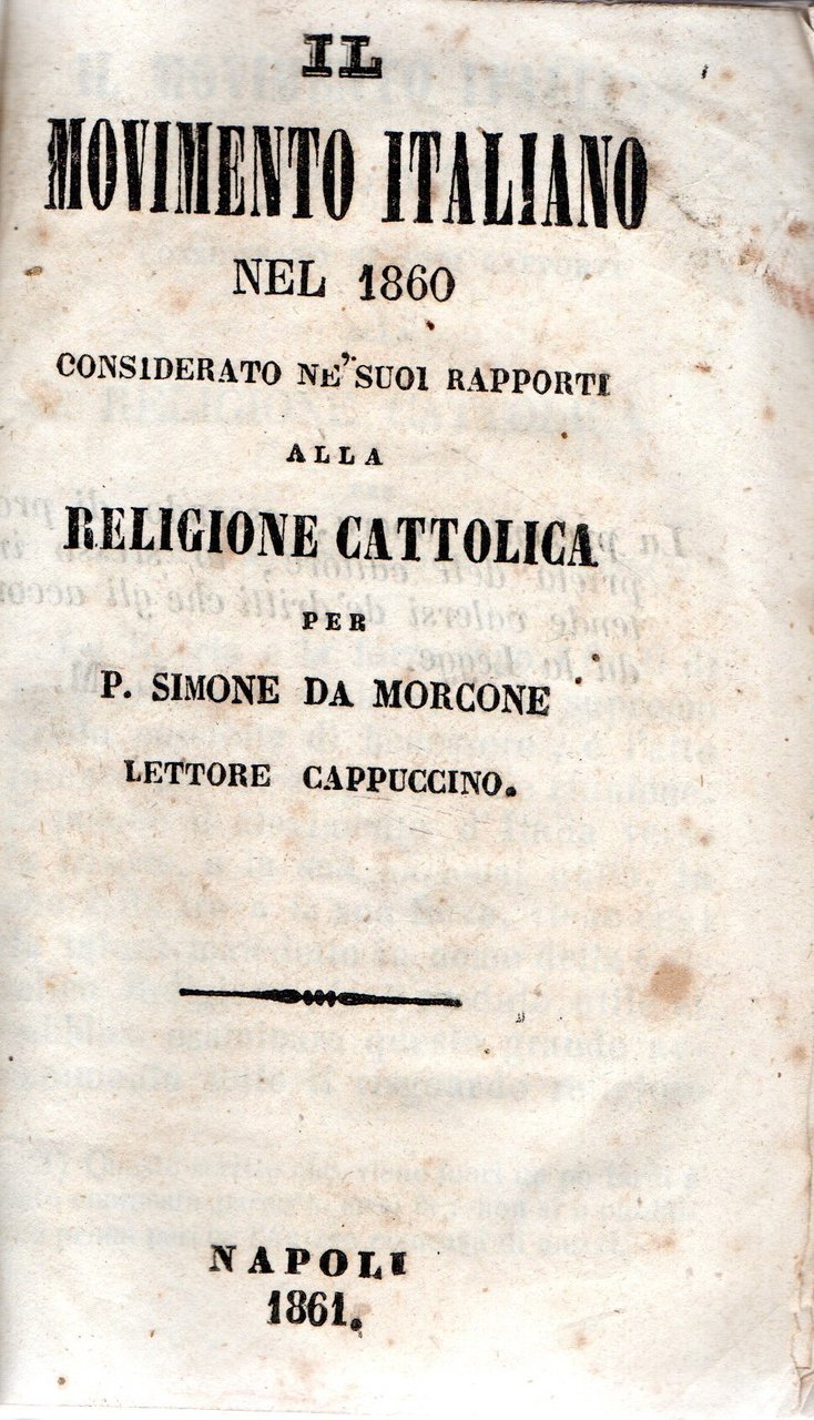 Il Movimento Italiano nel 1860 considerato de' suoi rapporti alla Religione Cattolica - Amori, Scandali e Misfatti de' Borboni di Napoli - Del Dritto del Popolo all'Insurrezione - Manoscritto scoperto nel Real Palazzo di Caserta - Le Atrocità Occulte di Bomba I. ossia Ferdinando II - Quindici Mesi di Regno Quindici Mesi di Brutalità - Ferdinando II Re di Napoli direttore di polizia - Capua e Gaeta ovvero I misteri della diplomazia - I Delitti e Le eresie dei Papi - Quello che si fa ora in Roma ovvero Le magagne papaline e borboniche - Il Nepotismo dei Papi | Rare and modern books | P. Da Morcone, Simone, ,P. Da Morcone, Simone