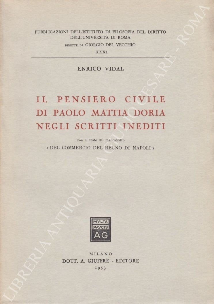 Il pensiero civile di Paolo Mattia Doria negli scritti inediti. Con il testo del manoscritto "Del Commercio del Regno di Napoli" | Rare and modern books | Vidal Enrico (1916-1989)