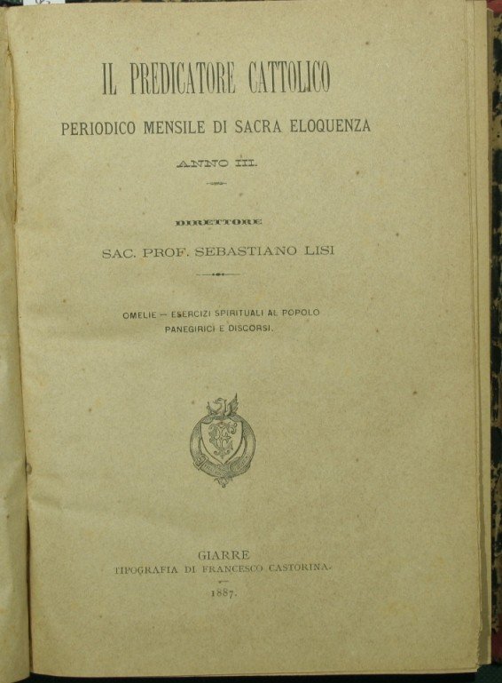 Il predicatore cattolico. Anno III | Rare and modern books | Lisi Sebastiano
