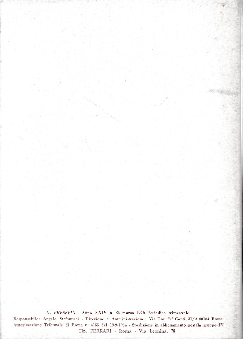 Il Presepio. Rivista dell'Associazione Italiana Amici del Presepio - Marzo 1976 - anno XXIV - n. 85