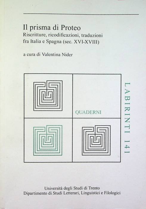 Il prisma di Proteo: riscritture, ricodificazioni, traduzioni fra Italia e Spagna (sec. 16. | Rare and modern books | Nider, Valentina.
