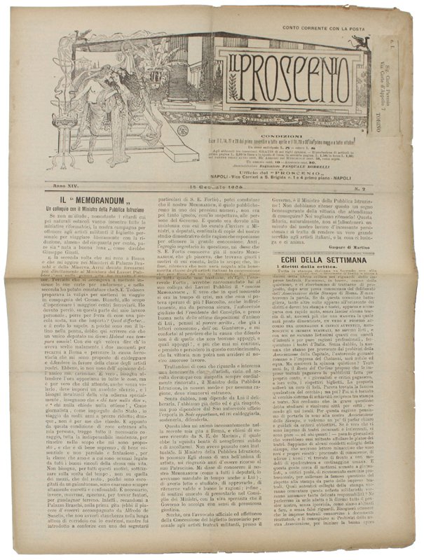 IL PROSCENIO. Giornale Artistico Teatrale. Anno 1906 (32 numeri) | Rare and modern books | Di Martino Gaspare (Direttore)