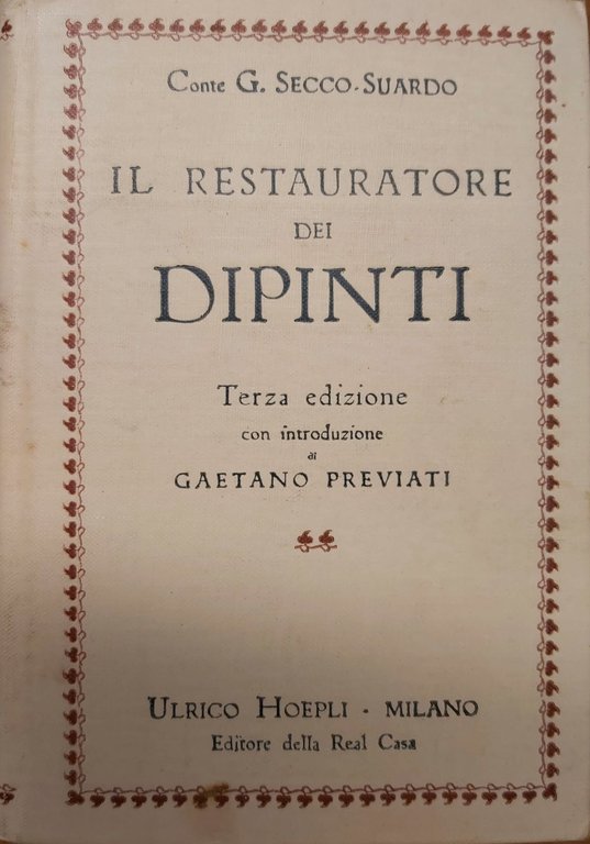 IL RESTAURATORE DEI DIPINTI. Terza edizione con una introduzione allo studio del restauro di Gaetano Previati ed alcune considerazioni sul restauro moderno del Prof. L. de Jasienski. | Rare and modern books | Secco Suardo Giovanni.