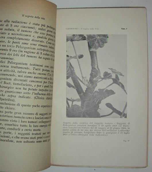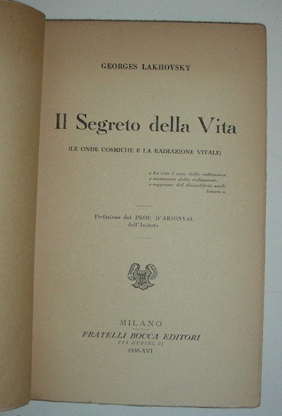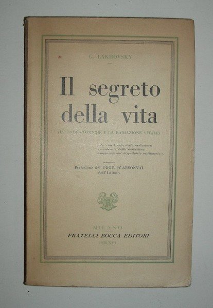 IL SEGRETO DELLA VITA (le onde cosmiche e la radiazione vitale). Prefazione del Prof. D’ Arsonval. | Rare and modern books | Lakhovsky G.