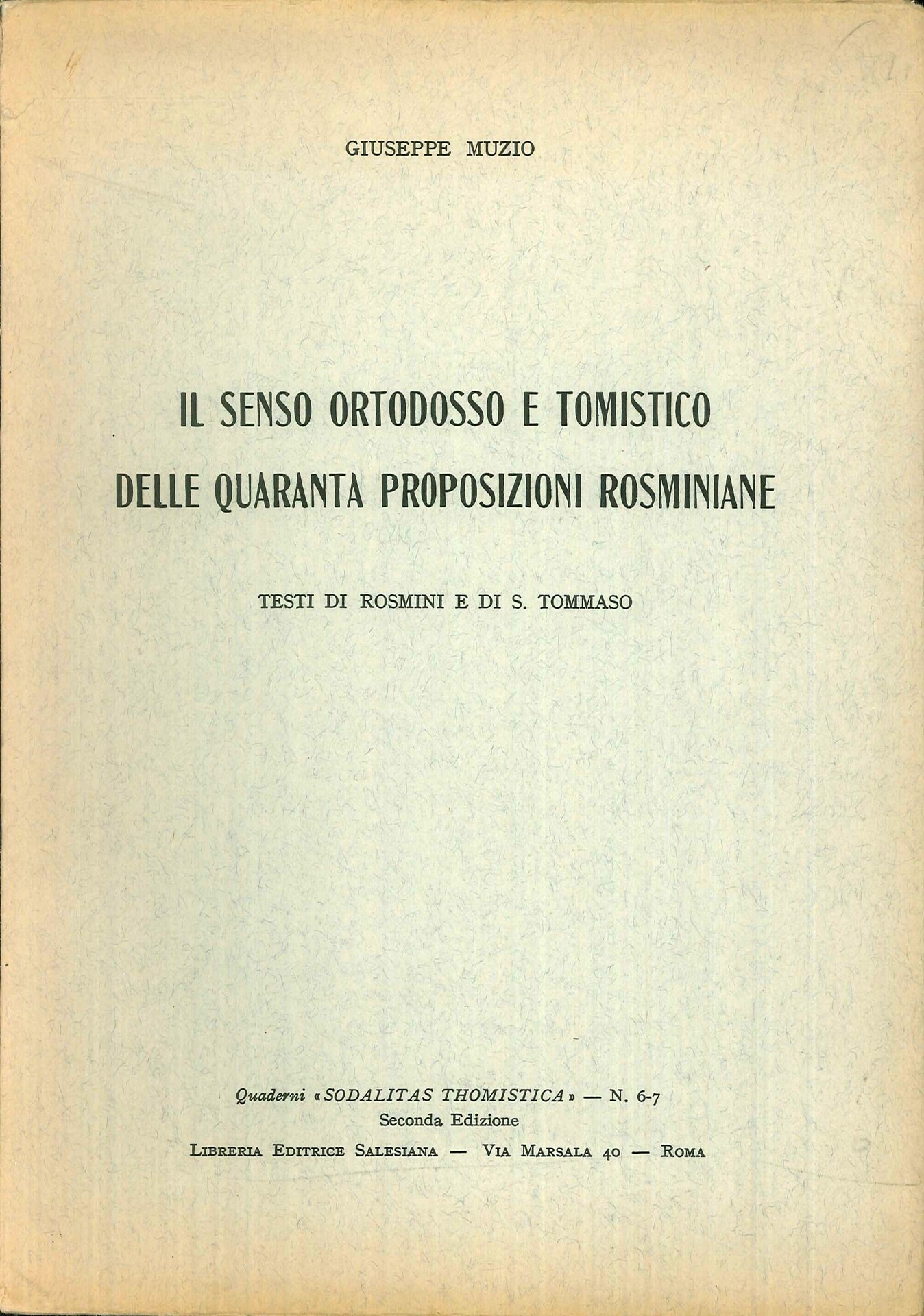 Il Senso Ortodosso e Tomistico delle Quaranta Proposizioni Rosminiane. | Rare and modern books | Giuseppe Muzio