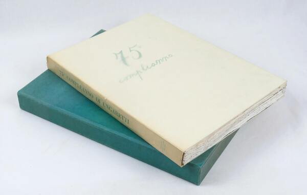 - brossura originale con sovracoperta risvoltata a tamburo e pergamino semitrasparente protettivo, astuccio in cartonato rivestito di carta verde,
