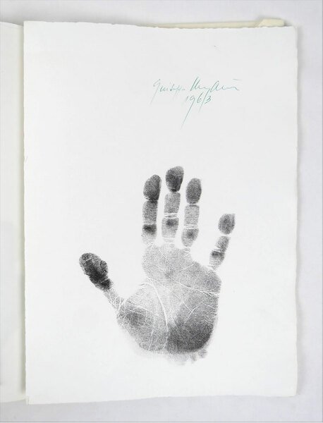 Il taccuino del vecchio. Manoscritto [.] manoscritti definitivi di Auguri e del Monologhetto. Apocalissi. Manoscritto [.] traduzioni in manoscritto definitivo di Francis Ponge tempera originale di Jean Fautrier [in copertina:] 75° Compleanno di Ungaretti | Rare and modern books | Ungaretti, Giuseppe, Jean Fautrier E Francis Ponge