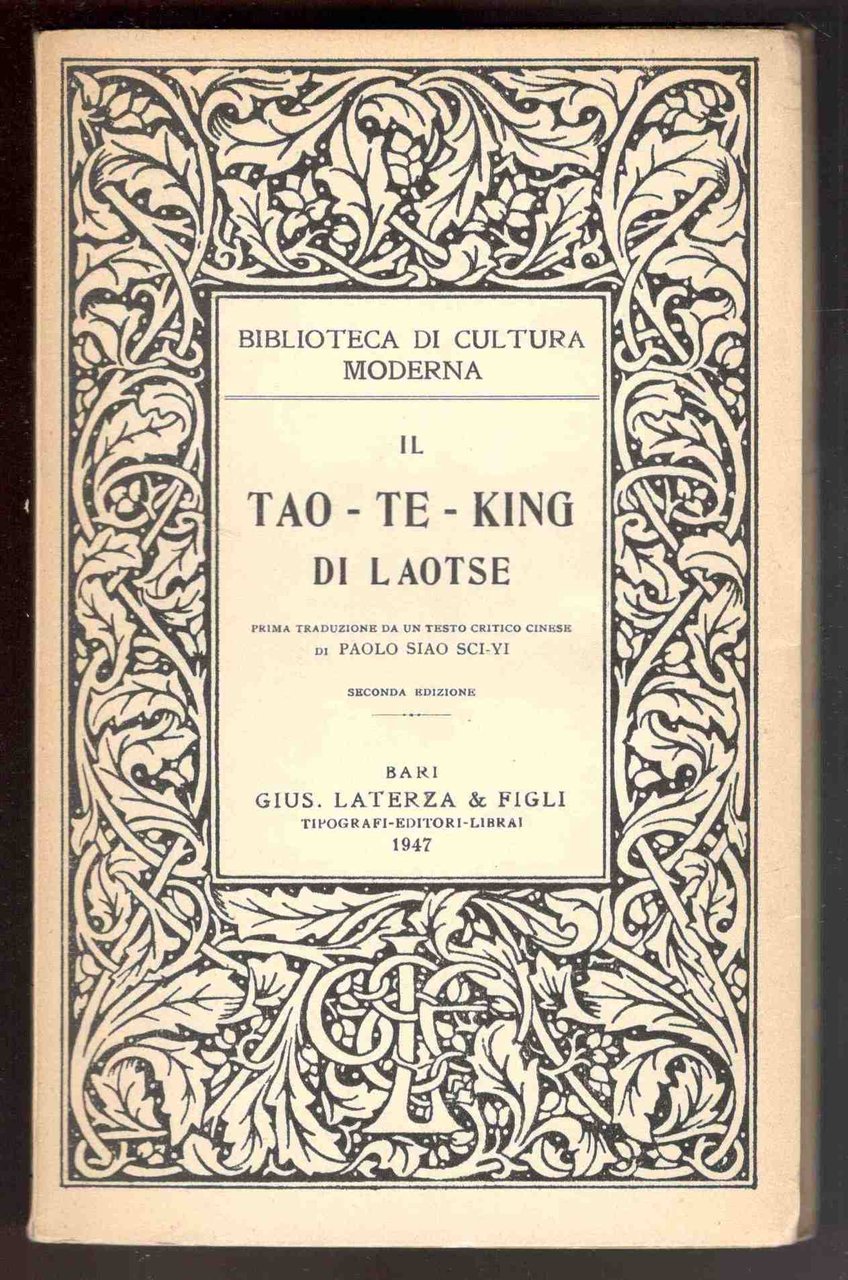 Il Tao-te-king di Laotse. Prima traduzione da un testo critico cinese di Paolo Sia Sci-Yi. Seconda edizione