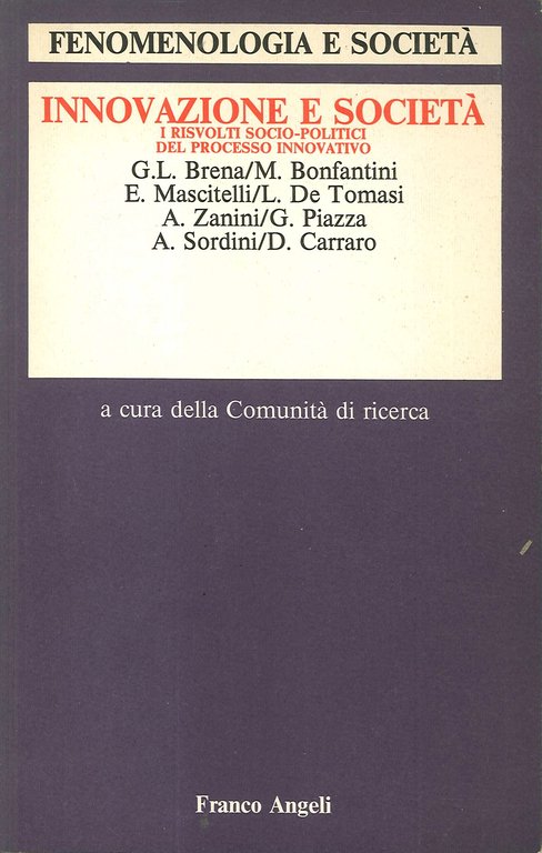 Innovazione e società. I risvolti sociopolitici del processo innovativo | Rare and modern books | Bonfantini M, Mascitelli E, De Tomasi L, Zanini A, Piazza G, Sordini A, Carraro D