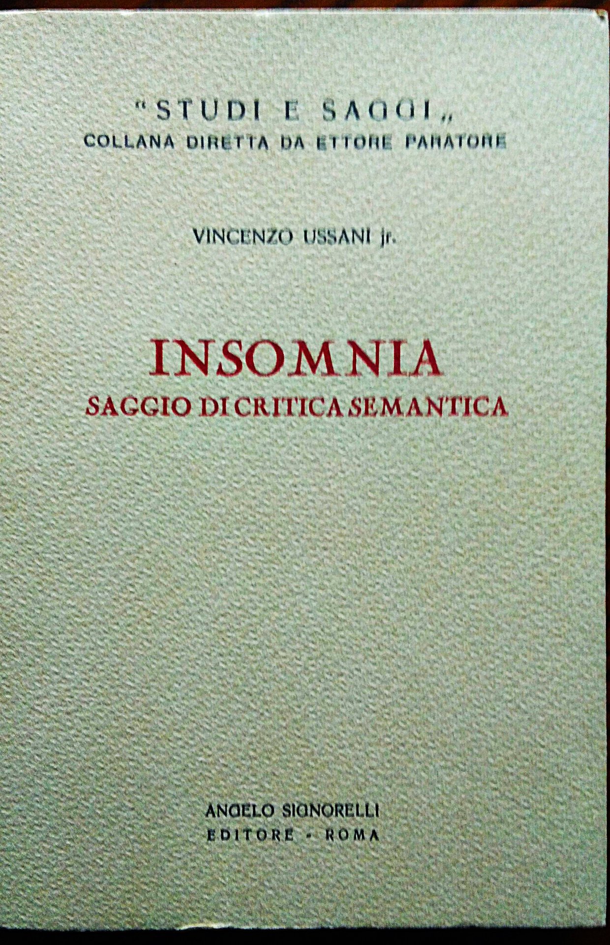Insomnia. Saggio di critica semantica. | Rare and modern books | Ussani, Vincenzo jr.