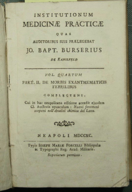 Institutionum medicinae practicae quas auditoribus suis praelegebat Io. Bapt. Burserius de Kanilfeld - Vol. IV | Rare and modern books | Borsieri G. B.