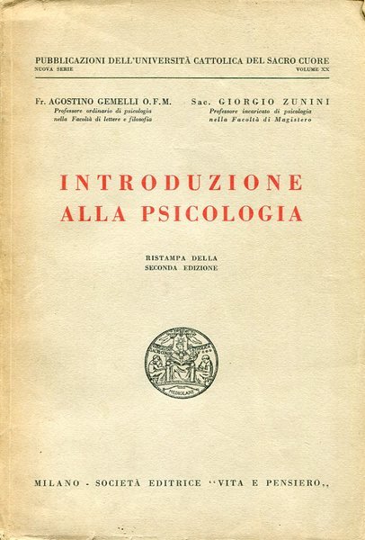 Introduzione alla Psicologia | Rare and modern books | Agostino Gemelli - Giorgio Zunini, ,Agostino Gemelli - Giorgio Zunini