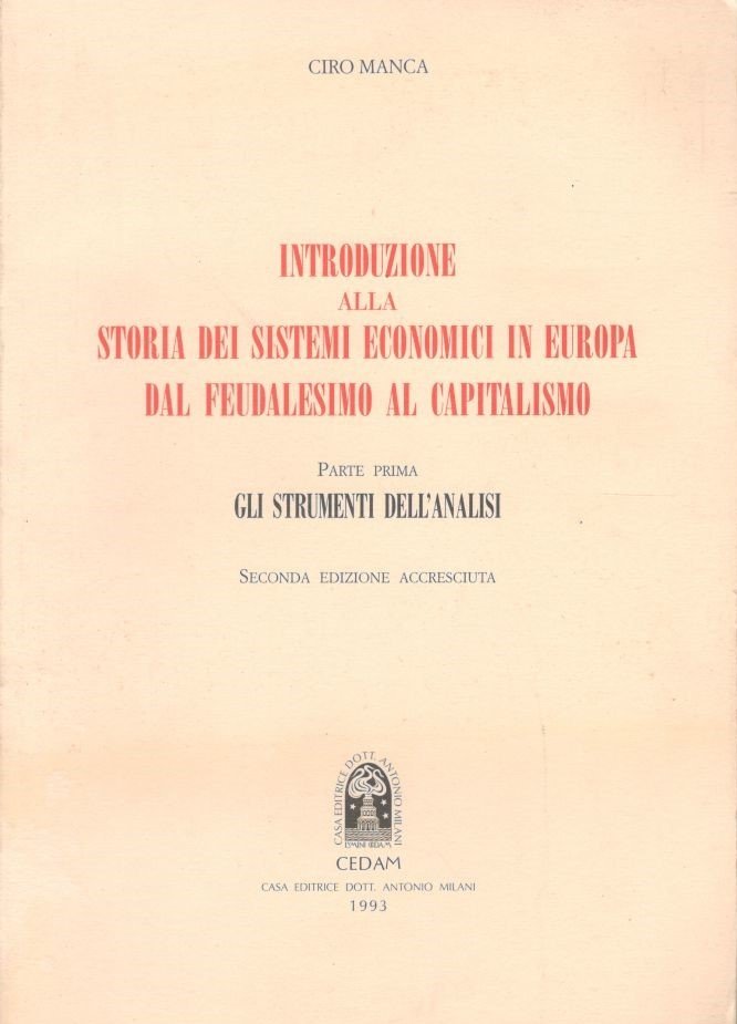 Introduzione alla storia dei sistemi economici in Europa dal feudalesimo al capitalismo. Parte prima : gli strumenti dell'analisi | Rare and modern books | Ciro Manca, ,Ciro Manca