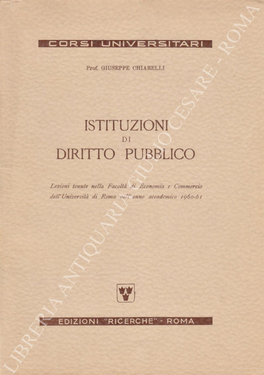 Istituzioni di diritto pubblico. Lezioni tenute nella Facoltà di Economia e Commercio dell'Università di Roma nell'anno accademico 1960-61 | Rare and modern books | Chiarelli Giuseppe (1904-1978)