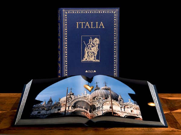 Introduzione di Louis Godart - In folio - pp.460 - Pelle con custodia - Duecentootto immagini fotografiche elaborate in fotolito nel laboratorio di Modesto Rigoldi, in Milano, e stampate a quattro colori + venti immagini, che aprono le sezioni dedicate a ogni regione - Allo stato di nuovo, conserva scheda tecnica. Esemplare n° 779 di 2000 - L'opera rappresenta un viaggio ideale tra i capolavori noti e meno noti delle venti regioni italiane, attraverso immagini fotografiche di altissima qualità e un'antologia di brani dedicati all'Italia da alcuni dei suoi più autorevoli e celebri visitatori.<br>L'opera si compone di: una presentazione del Presidente Emerito della Repubblica Italiana Carlo Azeglio Ciampi; un'introduzione dal titolo Il Paese della Bellezza a 150 anni dall'Unità d'Italia, di Louis Godart.<br>La stampa dei testi, composti con i caratteri Bembo tondi e corsivi, così come la stampa delle venti immagini in colore bruno e delle relative didascalie, sono state eseguite in Loreto, presso la stamperia di Lamberto Pigini su carta di puro chiffon da 180 grammi, impreziosita dalla filigrana 'FMR', lavorata a mano e realizzata appositamente per quest'opera dalle Cartiere Magnani, in Pescia.<br>Le immagini fotografiche sono state con inchiostri speciali presso la stamperia di Lamberto Pigini su carta patinata opaca da 170 grammi, prodotta dalle Cartiere del Garda, in Riva del Garda.<br>La cucitura, la legatura con iscrizioni in oro sul dorso a cinque nervi, le impressioni in oro sul piatto di copertina raffiguranti fregi della tradizione tipografica italiana e l'allegoria dell'Italia, tratta dall'Iconologia di Cesare Ripa, nell'edizione del 1603, nonché il rivestimento del volume in pregiata pelle tinta alla botte in colore blu, sono stati eseguiti presso la legatoria L'Arte del Libro, in Todi.<br>Ogni esemplare che misura nel formato chiuso cm 31 x 43,5 x 6, è numerato e firmato da Marilena Ferrari in corrispondenza del colophon descrittivo ed è contenuto in un elegante cofanetto realizzato su progetto esclusivo.