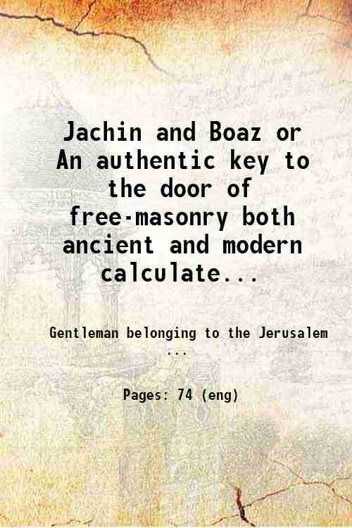 Jachin and Boaz or An authentic key to the door of free-masonry both ancient and modern calculated not only for the instruction of every new made mason but also for the information of all who intend to become brethren . to which is now added a new and accurate list of all the English regular lodges in the world according to their seniority with the dates of their constitution and days of meeting / by a gentleman belonging to the Jerusalem Lodge . 1797 | Rare and modern books | Gentleman Belonging To The Jerusalem Lodge