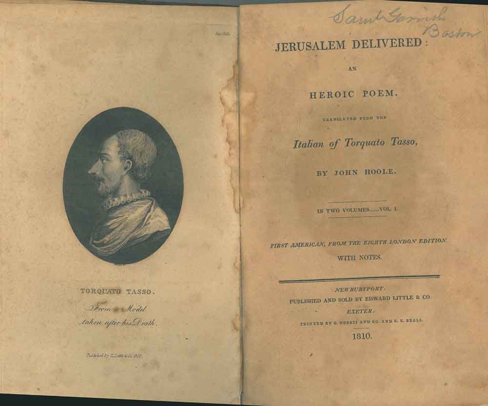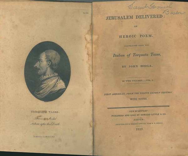 Jerusalem Delivered an hroic poem translated from the italian of Torquato Tasso by John Hoole. First american, from the eighth London Edition. With notes. IL SOLO 1° VOLUME | Rare and modern books | Tasso Torquato