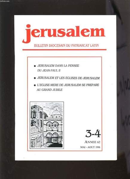 JERUSALEM N�3-4 - ANNEE 62 - JERUSALEM DANS LA PENSEE DU JEAN PAUL II, JERUSALEM ET EGLISES DE JERUSALEM, L'EGLISE-MERE DE JERUSALEM SE PREPARE AU GRAND JUBILE | Rare and modern books | Collectif