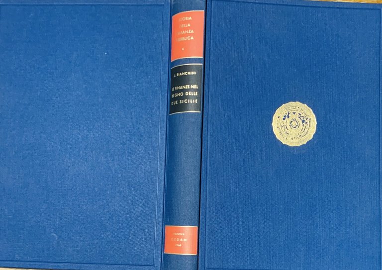 ristampa (16 marzo marzo 1960) a cura del Prof. Giovanni Raffiotta dal Libro settimo della II ed. del testo "Della storia delle finanze del Regno di Napoli. Libri sette", Palermo, Stamperia di Francesco Lao 1839 e dalle parti terze e quarte del Libro Secondo dell'unica edizione "Della storia economico-civile di Sicilia", Palermo, Stamperia di Francesco Lao 1841. Collezione diretta da Emanuele Morselli, Storia della Finanza Pubblica, 6. VIII/ (2)+XXVI+428/ cart./ Con tabelle in nero nel testo e f.t.. Stato buono pagine lievemente brunite). Indice: Prefazione; Emanuele Morselli (Palermo, marzo 1960 - Della vita e delle opere di Lodovico Bianchini; Giovanni Raffiotta - Lodovico Bianchini; Della storia delle finanze del Regno di Napoli (Libro settimo. Governo dal 1806 al 1815; e dal ritorno dei Borboni da questa epoca insino al 1835 (Sposizione di quanto riguardò alle instituzioni politiche, all'amministrazione in generale, e a' casi più memorabili ch'ebbero luogo dal 1806 al 1815 - Sposizione delle leggi, degli ordinamenti, e di altre cose intorno alla proprietà da 1806 al 1835 - Contribuzioni, ed altro che hanno formato la rendita dello stato - Metodo di amministrazione e pubbliche spese - Industria e circolazione delle ricchezze)) - Lodovico Bianchini; Della storia economico-civile di Sicilia. Libro secondo (Parte terza. Contribuzioni pagate dal popolo e tutt'altro che formava la rendita dello Stato, metodo di amministrazione e pubbliche spese - Parte quarta. Sposizione di quanto riguardò le monete ed in generale i capitali e l'industria considerata sotto qualsiasi aspetto dal 1735 al 1840) - Filippo Minolfi; In proposito della seconda edizione della "Storia delle finanze del Regno di Napoli" del Cavaliere Lodovico Bianchini - Domenico Scina; Considerazioni economiche politiche sul debito pubblico della Sicilia - Le entrate delle Provincie Napoletane ("Domini di qua dal faro") dal 1831 al 1860 (a cura di G. de Meo e di A. Percuoco) - Le entrate complessive del Regno delle Due Sicilie per alcuni anni compresi fra il 1827 e il 1858 (a cura di G. de Meo) - Sul carico tributario erariale del Regno delle Due Sicilie nel 1856 (a cura di G. de Meo).