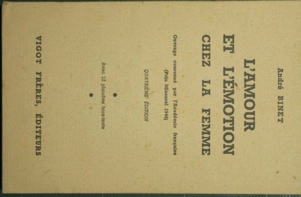 L'amour et l'emotion chez la femme | Rare and modern books | Binet André