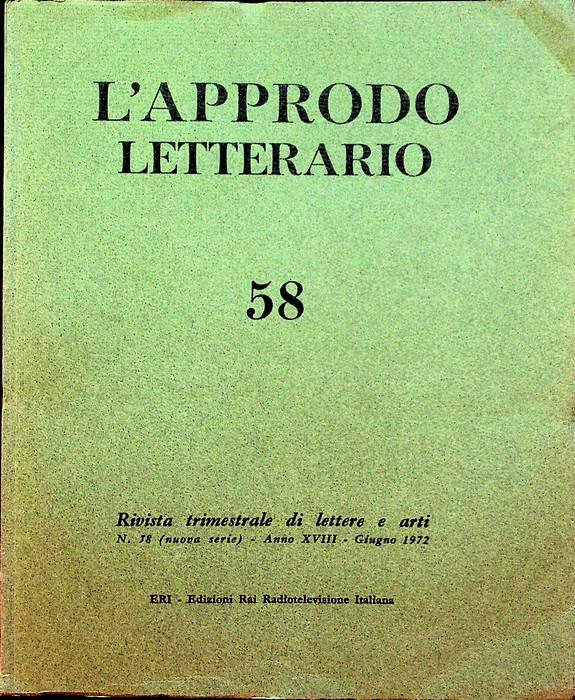 L'approdo letterario: rivista trimestrale di lettere e arti: N. 58 (nuova serie) - A. XVIII - giugno 1972. | Rare and modern books |