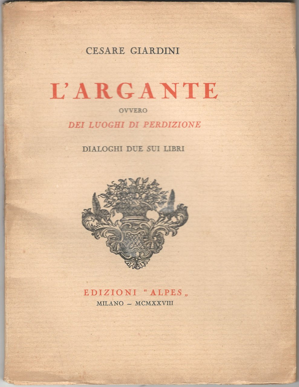 L'Argante ovvero dei luoghi di perdizione. Dialoghi due sui libri. | Rare and modern books | Giardini Cesare
