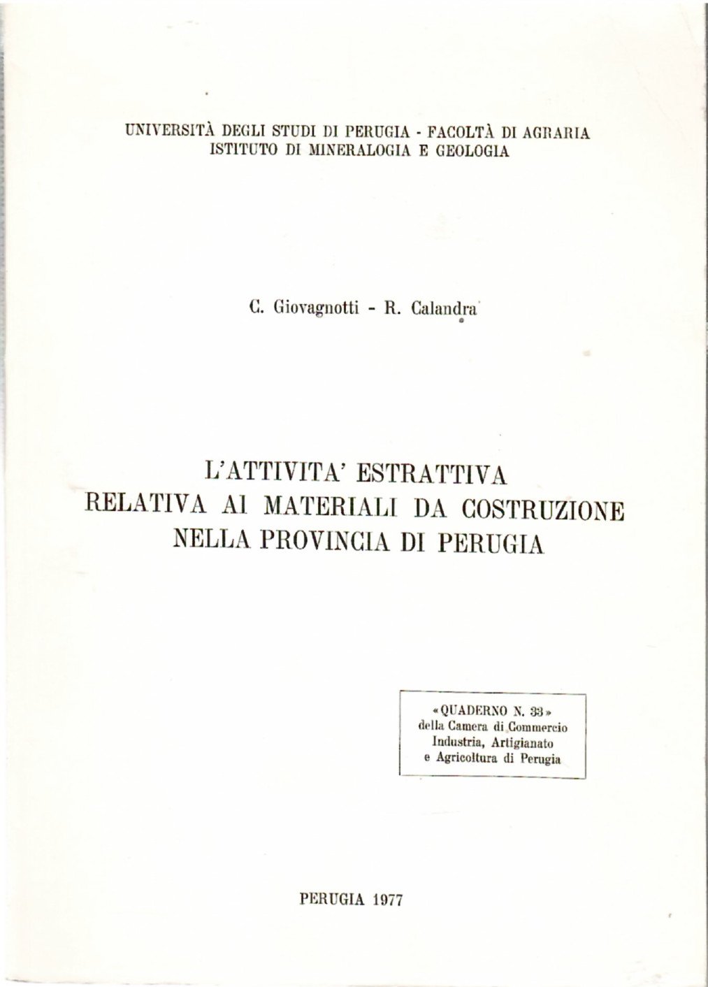 L'attività Estrattiva Relativa Ai Materiali Da Costruzione Nella Provincia Di Perugia | Rare and modern books | Giovagnotti Celso - Calandra Rolando