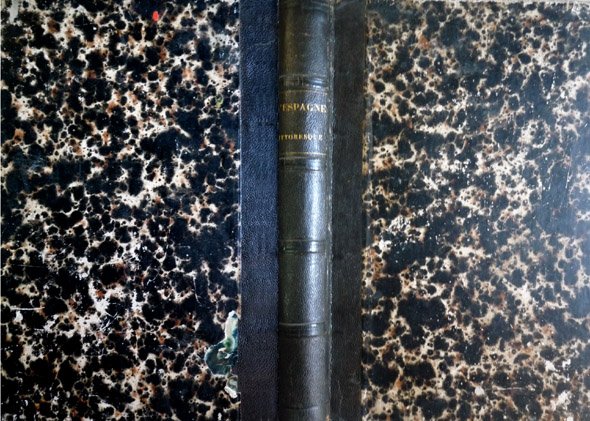 Paris, Libraire Etnographique, 1848. Folio; 2 hs., 392 pp., 2 hs. Con 106 viñetas entre el texto, de Célestin Nanteuil y una lámina retrato de Isabel II. Ejemplar carente de las 50 láminas de monumentos y trajes que acompañan al texto. Encuadernación en media piel, de la época.