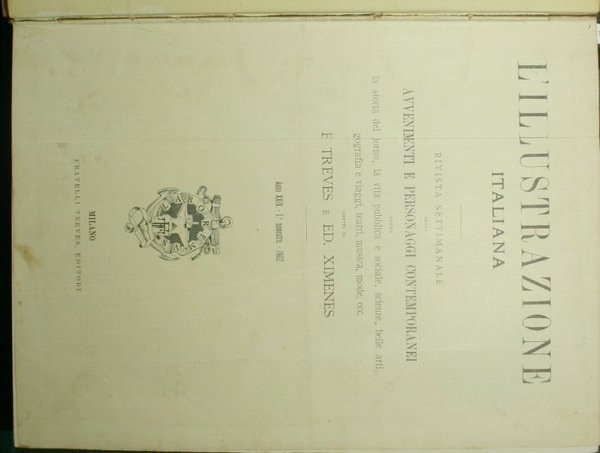 Rivista settimanale degli avvenimenti e personaggi contemporanei sopra la storia del giorno, la vita pubblica e sociale, scienze, belle arti, geografia e viaggi, teatri, musica, mode, ecc. - Diretta da E. Treves e Ed. Ximenes - Collana L'illustrazione italiana. Anno XXIX - Gennaio/Dicembre 1902 - nn. 1/52 - In folio - pp.520 + 504 - Mezza pelle con titolo e fregi in oro al dorso - Cinquantadue fascicoli in un volume - Illustrazioni in b/n nel testo e fuori testo - Testo su colonne - Abrasioni al dorso, ultimo fascicolo legato in posizione errata