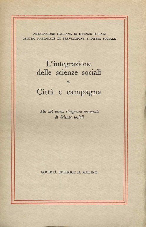 L'Integrazione delle Scienze Sociali. Citta' e Campagna. Atti del Primo Congresso di Scienze Sociali