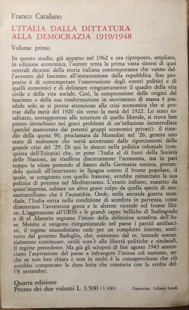 L'Italia dalla dittatura alla democrazia 1919/1948 Volume 1 | Rare and modern books | Franco Catalano, ,Franco Catalano