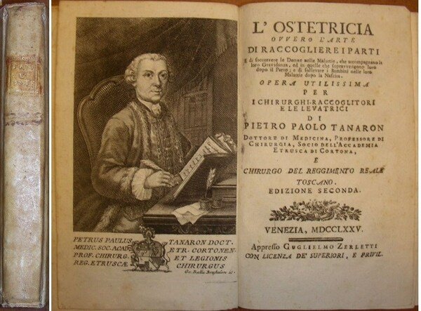 in-16, pp. XVI, 248, leg. p. perg. coeva con tit. oro al d. Con bel ritr. dell'A. nel suo studio inc. in rame e firmato da Giambattista Brustolon. Con 9 belle tavv. raff. parti anatomiche femminili, momenti del parto e strumenti chirurgici. Interess. trattato di ostetricia ma anche di pediatria in quanto sono prese in esame anche molte malattie dei bambini. Ex libris. Qualche brun., ma bell'esempl. [243]