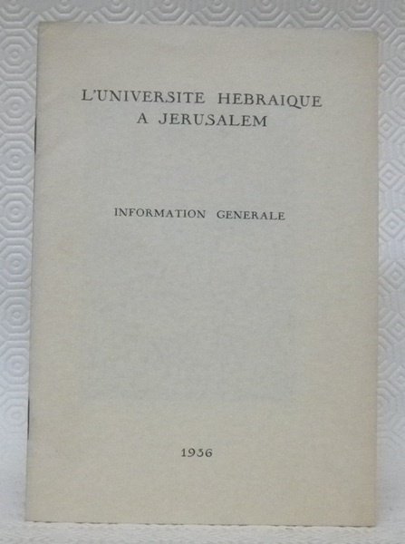 L’Université hébraique à Jérusalem. Information générale. | Rare and modern books |