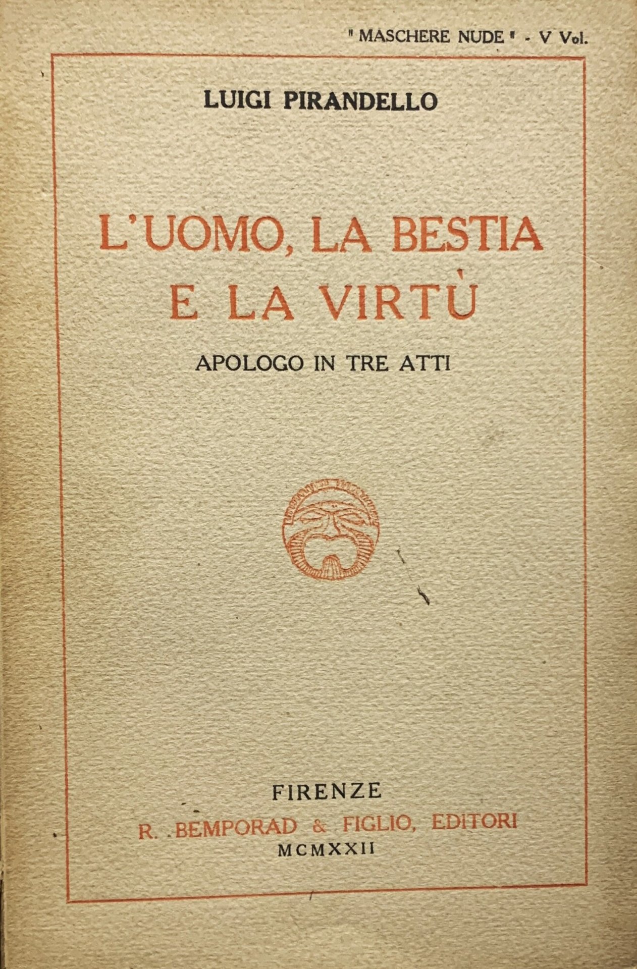 L'uomo, la bestia e la virtù. Apologo in tre atti | Rare and modern books | Pirandello, Luigi, ,Pirandello, Luigi