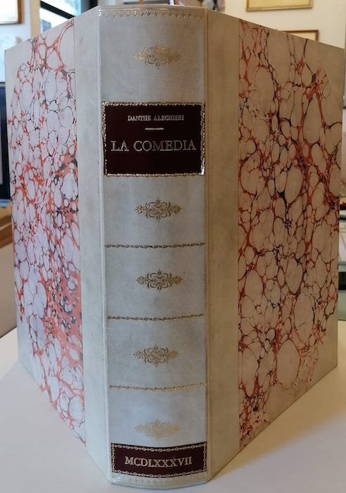 3 v. legati in uno (700 p. compl.), 34 cm, mezza pergamena su stile antico col tassello in pelle al dorso coi titoli oro, fregi in oro al dorso, piazzi marmorizzati. Condizioni : USATO - Stato : Molto buoni il volume e la sovr., ordinari segni d'uso e del tempo al cof. Altre note : Ed. di 499 esempl. (170) con firma dell'editore. Contiene 67 illustrazioni, le prime illustrazioni xilografiche per il poema.
