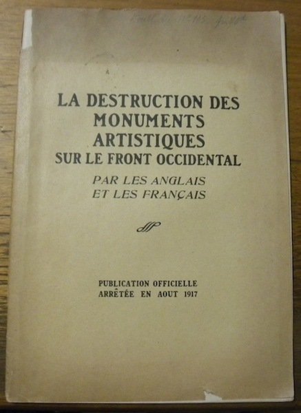La destruction des Monuments Artistiques sur le Front Occidental par les Anglais et les Français. Publication officielle arrêtée en août 1917.