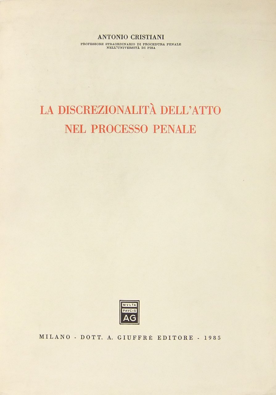 La discrezionalità nell'atto del processo penale | Rare and modern books | Cristiani Antonio