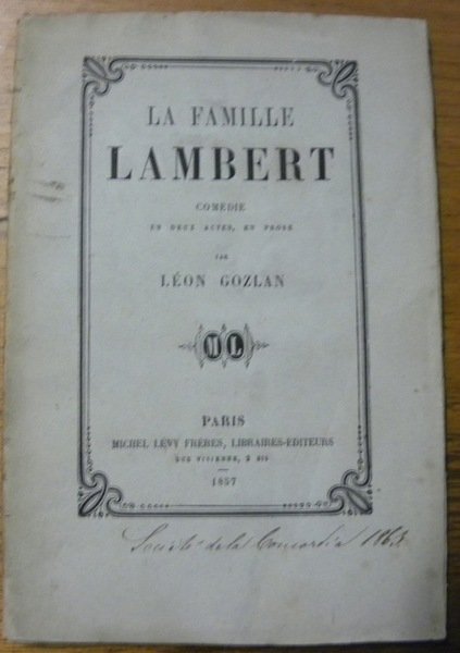 La famille Lambert. Comédie en deux actes, en prose. | Rare and modern books | Gozlan, Léon.
