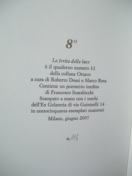 LA FERITA DELLA LUCE | Rare and modern books | Francesco Scarabicchi