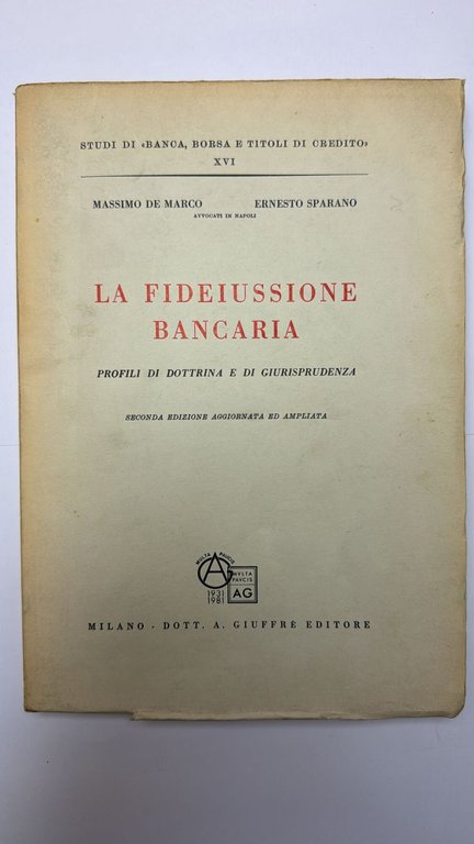 La fideiussione bancaria. Profili di dottrina e di giurisprudenza | Rare and modern books | Massimo De Marco, Ernesto Sparano, ,Massimo De Marco, Ernesto Sparano